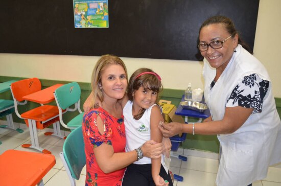 Imunização. Elaine Trassatto (à esq.) e a filha receberam a aplicação em colégio da zona sul onde a menina estuda