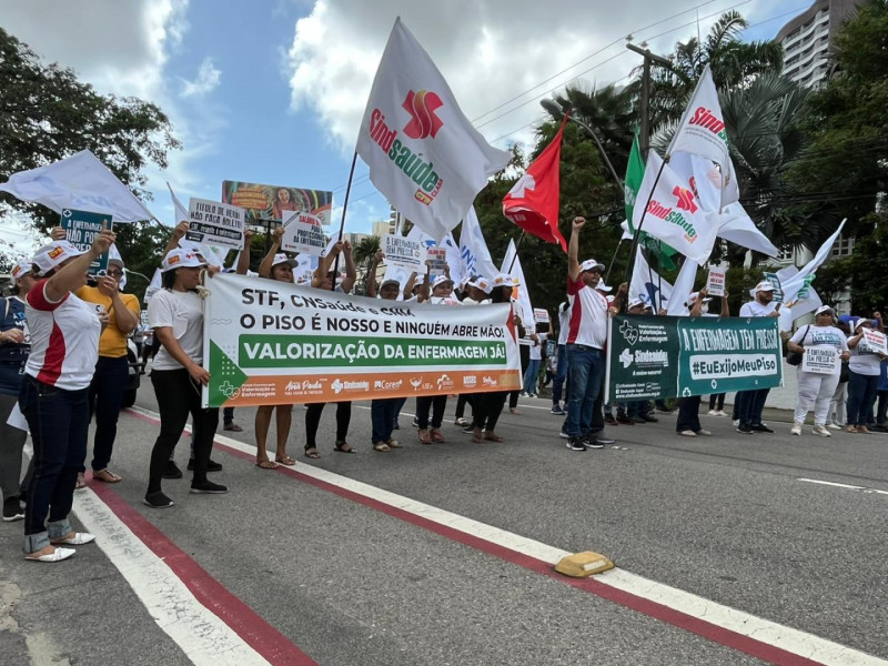Profissionais da enfermagem fazem ato contra decisão do STF que barra piso salarial
